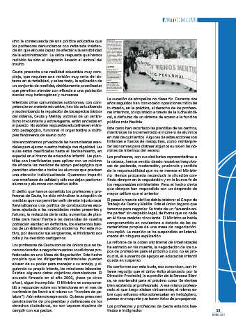 especial en el tramo de educación infantil. Las plan- Los profesores, con sus sindicatos representativos a