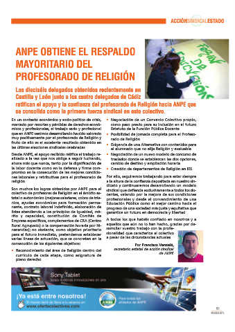 Desde ANPE, el apoyo recibido ratifica el trabajo re- • Negociación de un nuevo modelo de concurso de