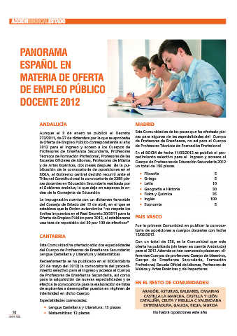 del Cuerpo de Profesores de Enseñanza Secundaria: para el 2012.Además se han convocado plazas en di-