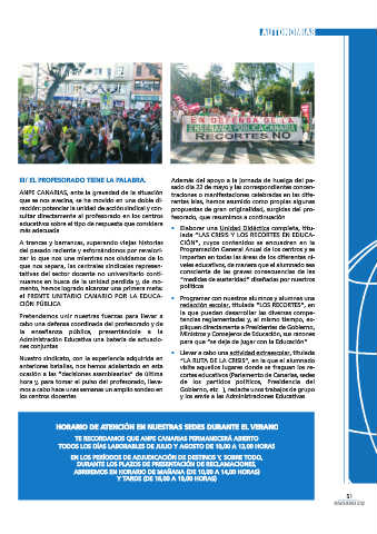 el FRENTE UNITARIO CANARIO POR LA EDUCA- • Programar con nuestros alumnos y alumnas una