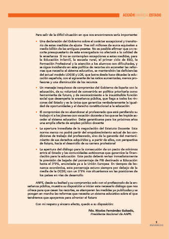 señanza pública, muestra su disposición a iniciar este necesario diálogo que nos