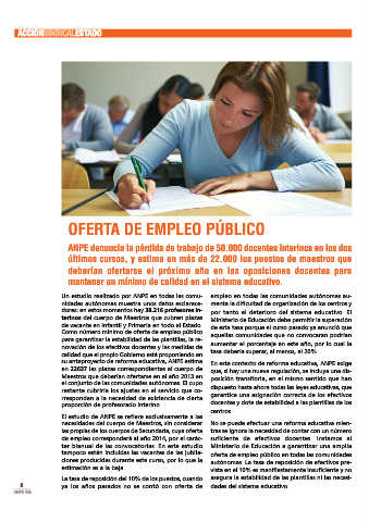 de empleo corresponderá al año 2014, por el carác- suficiente de efectivos docentes. Instamos al