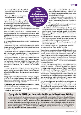 ordinarios, desdoblamientos de grupos, oferta de materias espe- mejoras para el profesorado. Desde ANPE vamos a seguir de-