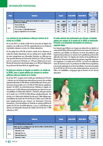 de otros trabajadores con Educación Terciaria: un 20% por de- estimado de la clase. En España, los salarios de los profesores en