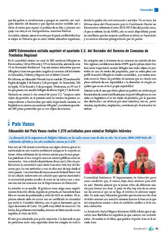 Extremadura, 160 en Primaria y 115 en Secundaria, además de otras bito regional, consideramos desde ANPE que las plazas cuyos titu-