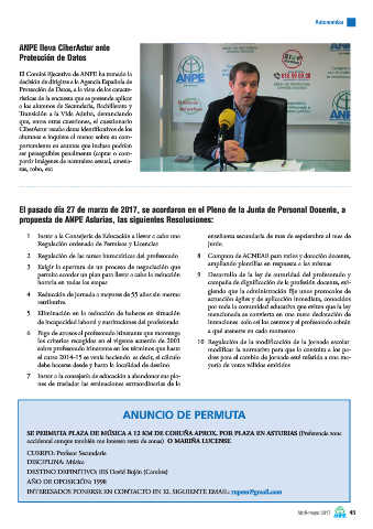 El pasado día 27 de marzo de 2017, se acordaron en el Pleno de la Junta de Personal Docente, a