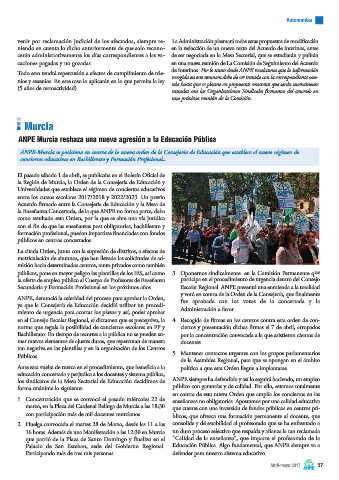 ANPE Murcia rechaza una nueva agresión a la Educación Pública