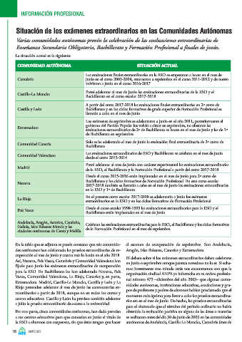 En la tabla que se adjunta se puede constatar que seis comunida- al examen de recuperación de septiembre. Son Andalucía,