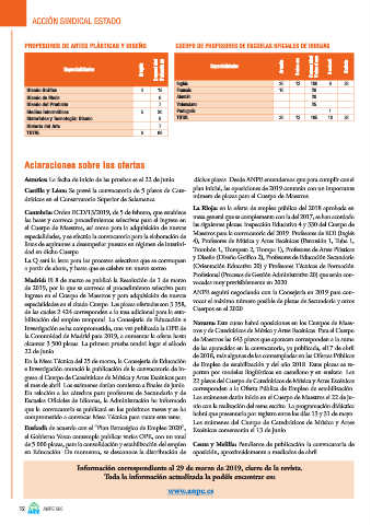 ingreso en el Cuerpo de Maestros y para adquisición de nuevas ANPE seguirá negociando con la Consejería en 2019 para con-